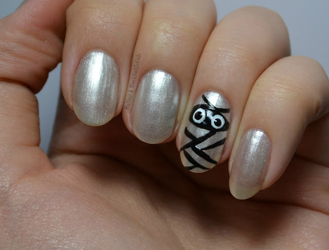 This post is scheduled, because as you read this I'm probably asleep or on my way to the university =)) I still have to do 2 more manis and it's already the 31st October! So here is the Mummy challenge and later today, when I come home from the uni, I'll post the other challenge. And tomorrow I'll post my favorite Halloween mani! :D